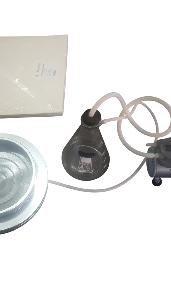Dimension: Ø250×60 mm Filter pan made of steel 2000 ml Erlenmayer + vacuum hoses 100 pcs 40×40 cm white filter paper Double-Stage Vacuum Pump 10.0 m³/h Review the product