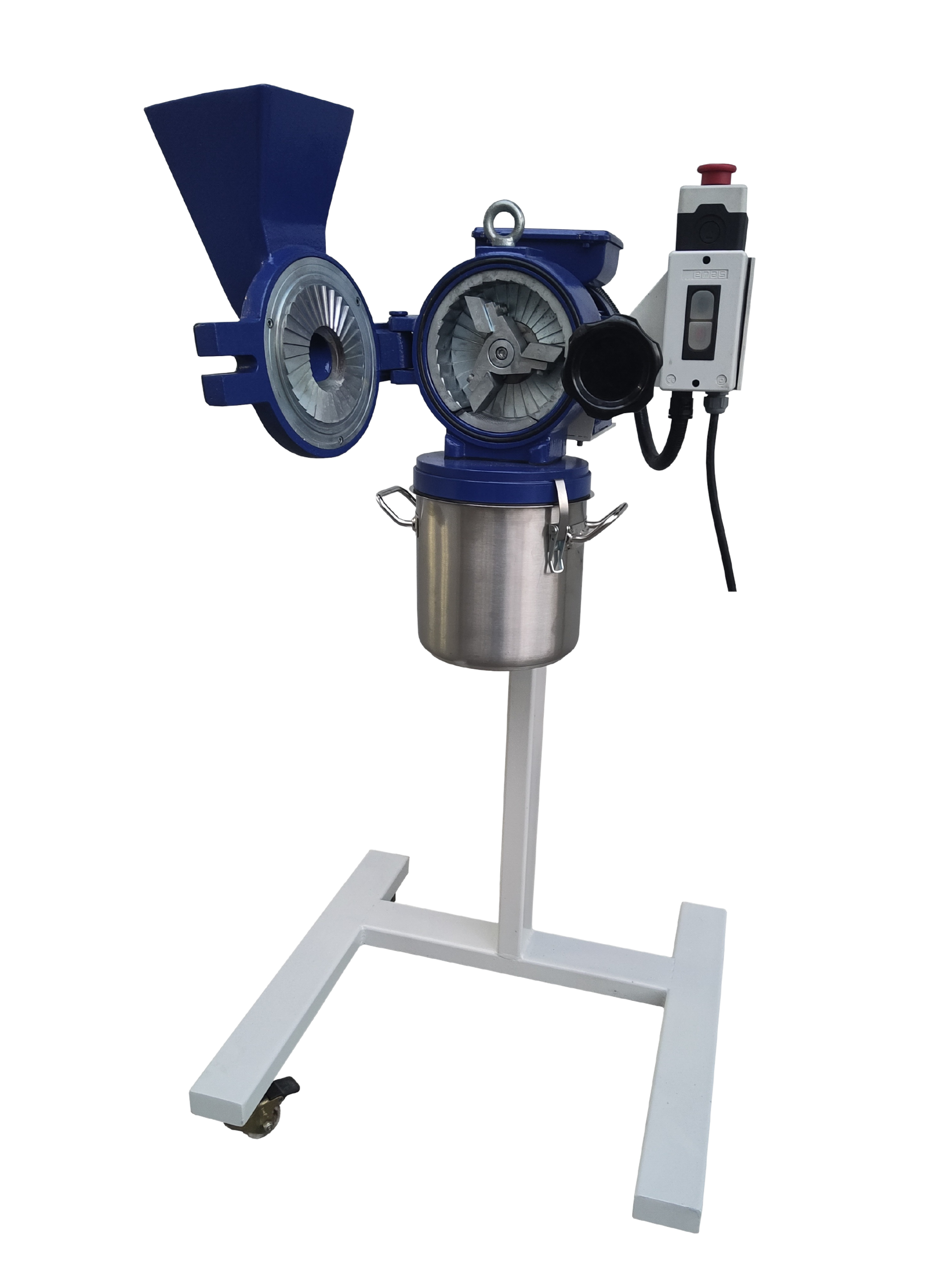 Sertleştirilmiş çelik veya paslanmaz çelik öğütme elemanlarından üretilen değirmen, isteğe bağlı siklon toz emme ünitesi ve 3 litrelik bir toplayıcı içerir. 380 V, 50 Hz’de çalışan 1,1 kW’lık bir motorla çalışan değirmen, taban şasisiyle birlikte yaklaşık 60 kg ağırlığındadır.